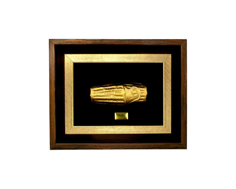 This handmade Cyrus Cylinder is crafted from 24K gold leaf and features highly detailed and intricate work, inspired by the famous Cyrus Cylinder from ancient Persia.