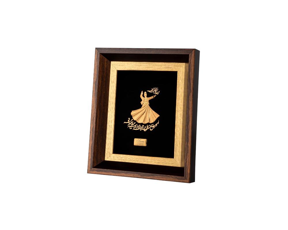 Inspired by the Sufi ritual of Sama—the turning toward Love and the Divine—this artwork features a hand-crafted dervish silhouette and flowing Persian script in 24K gold leaf.