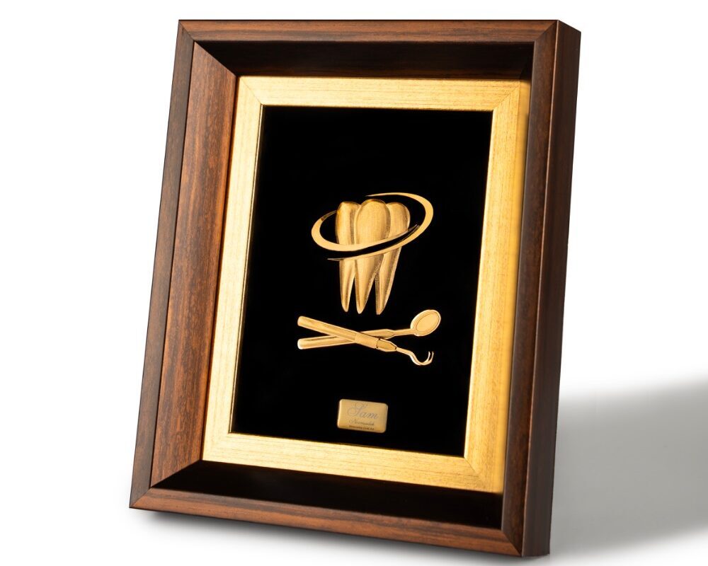 Crafted with 24K gold leaf and featuring the symbolic design of dentistry, this artwork adds a touch of luxury and sophistication to any professional space.